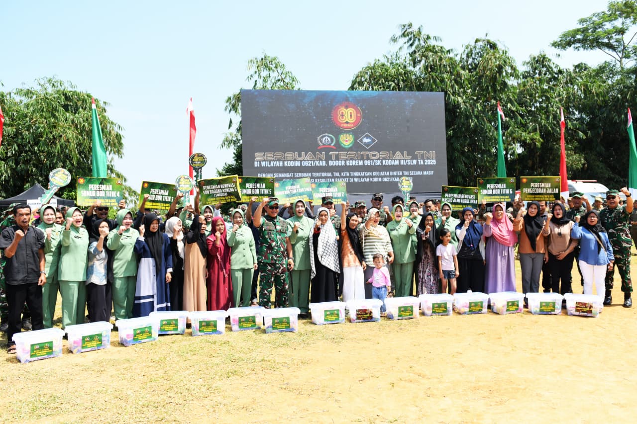 Dalam kesempatan yang sama, apresiasi tinggi juga diberikan kepada Kodam III/Siliwangi, Pemerintah Kabupaten Bogor, Dandim 0621/Kabupaten Bogor, serta para tokoh masyarakat atas dukungan dan kerja sama sehingga kegiatan Serbuan Teritorial TNI dapat berjalan lancar.