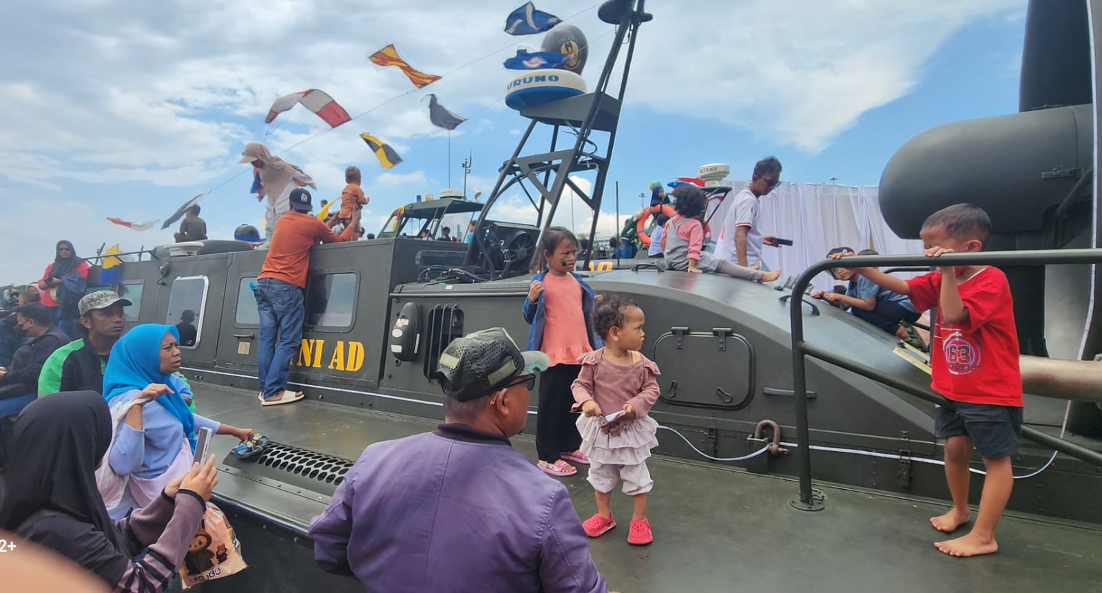 Di area pameran, antusiasme masyarakat terlihat luar biasa. Pengunjung rela mengantri untuk mencoba permainan seru, menikmati makan gratis, hingga membagikan keceriaan bersama keluarga sembari menikmati es krim gratis yang dibagikan TNI AD. Stand-stand TNI AD yang menampilkan alutsista modern, layanan edukasi, hingga rumah sakit lapangan penuh sesak oleh warga yang ingin mengenal lebih dekat peran dan kesiapan prajurit TNI AD.