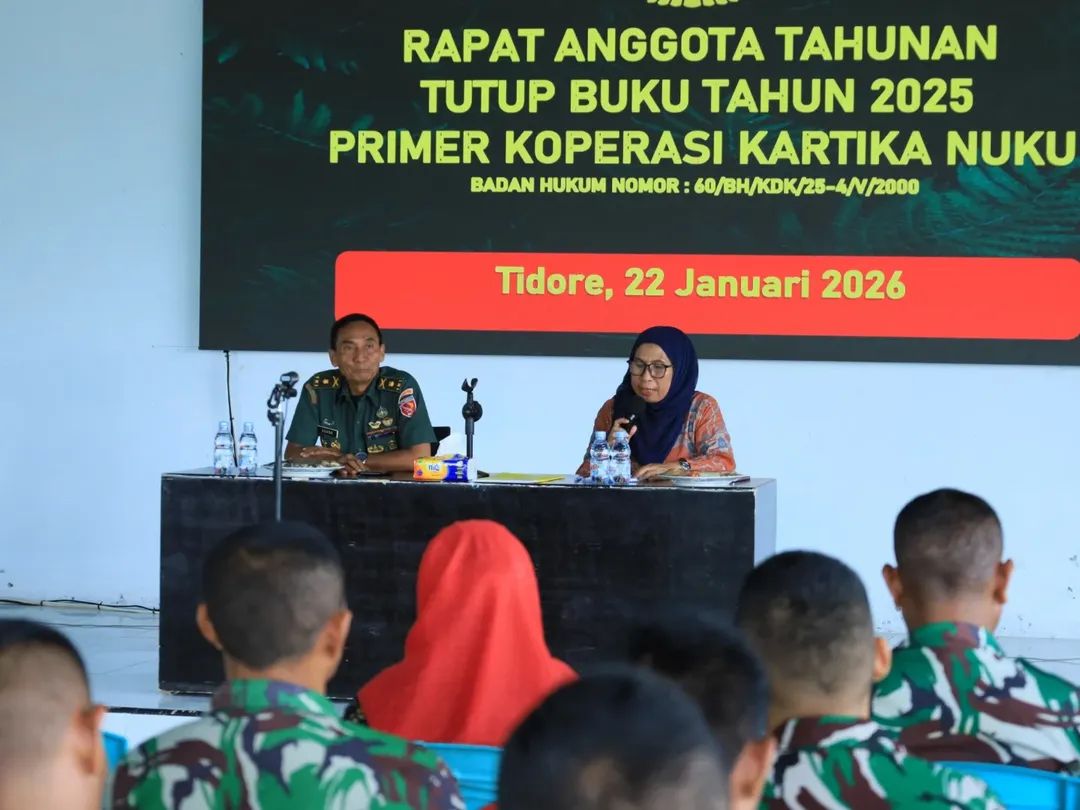 Tidore Kepulauan – Kodim 1505/Tidore melaksanakan Rapat Anggota Tahunan (RAT) Tutup Buku Tahun 2025 Primer Koperasi Kartika Nuku, bertempat di Aula Makodim 1505/Tidore, Kamis (22/1/2026).