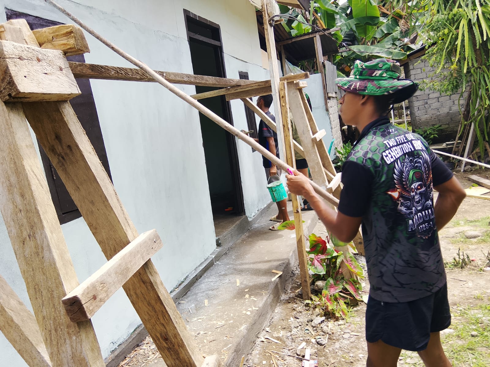 Personel TMMD Ke-127 Kodim 1514/Morotai Laksanakan Pengecatan RTLH di Desa Mandiri