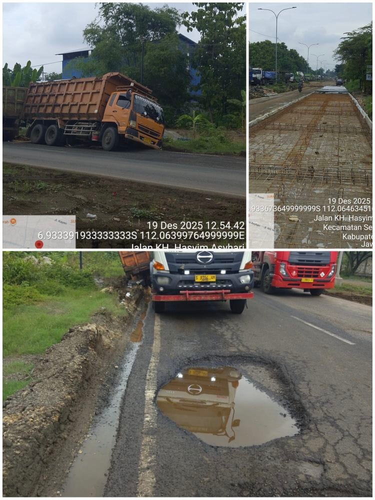 jalan berlubang dan licin, tanpa rambu peringatan, tanpa pagar proyek, tanpa lampu penerangan, dan tanpa petugas pengamanan. Kendaraan berat bebas melintas di medan yang jelas-jelas tidak layak fungsi.