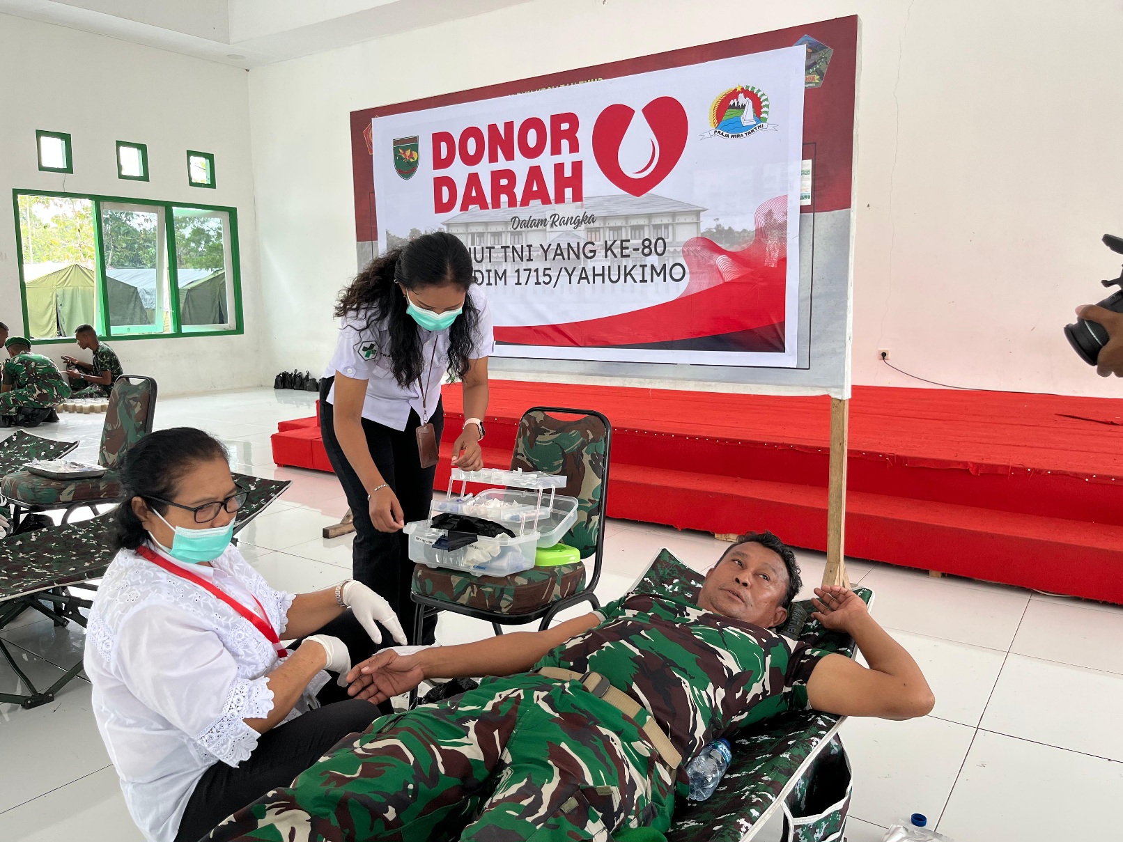 Sebanyak 100 kantong darah dari berbagai golongan berhasil dikumpulkan dari aksi donor darah yang diikuti oleh personel TNI AD dari satuan Kodim 1715/Yahukimo, Yonif TP 816/Doruka dan instansi-instansi Pemda.