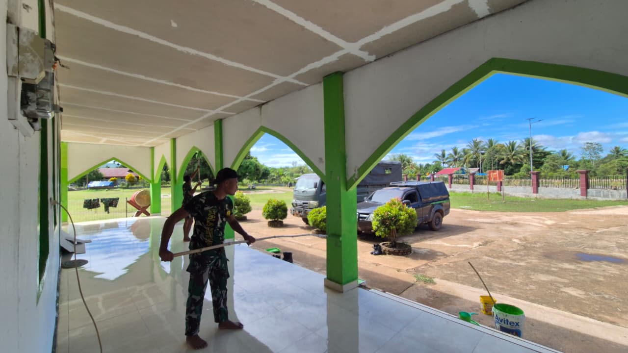 Karya bakti ini tidak hanya bertujuan memperindah tampilan masjid, tetapi juga menjadi wujud kepedulian TNI terhadap sarana ibadah yang menjadi pusat aktivitas keagamaan masyarakat. Dengan penuh semangat, prajurit Satgas bahu-membahu mengecat dinding dan mempercantik setiap sudut masjid agar jamaah dapat beribadah dengan nyaman.