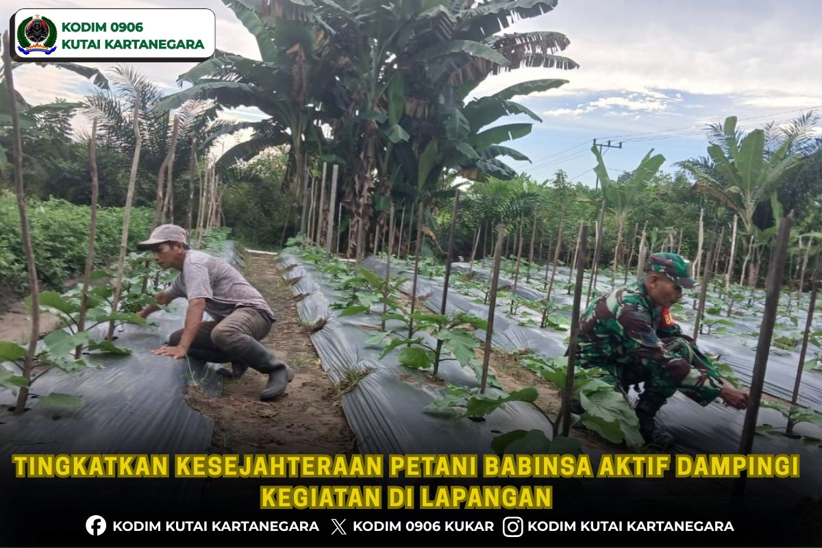 Kutai Kartanegara. bmwnews.id- Dalam mendukung meningkatkan kesejahteraan petani yang ada di wilayah binaan, anggota Babinsa Koramil 0906-08/Muara Kaman Serma Makbul melakukan pendampingan kepada petani terong yang berada di wilayah binaan tepatnya rt 08 Desa Muara Kaman Ulu Kecamatan Muara Kaman, Senin 20/4/26.