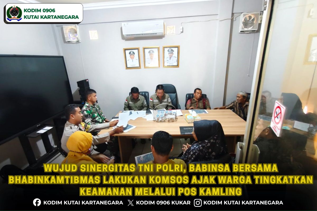 Kutai Kartanegara. bmwnews.id- Jaga stabilitas keamanan dan ketirtiban yang ada di lingkungan masyarakat, anggota Koramil 0906-02/Loa Kulu Serma Siswanto bersama bhabinkamtibmas lakukan kegiatan komsos dengan perangkat desa dan warga bertempat di ruang aula yang berada di Desa Jongkang Jalan Mangkunegara rt 3 Kecamatan Loa Kulu, Rabu 15/4/26.